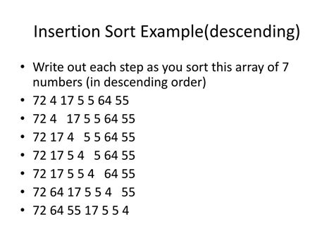 how to do insertion sort in descending order. There are any references about how to do insertion sort in descending order in here. you can look below.
