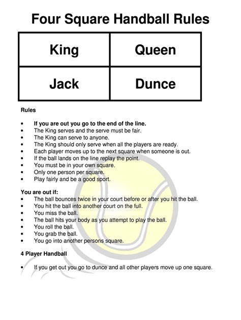 rules of 4 square handball. There are any references about rules of 4 square handball in here. you can look below.
