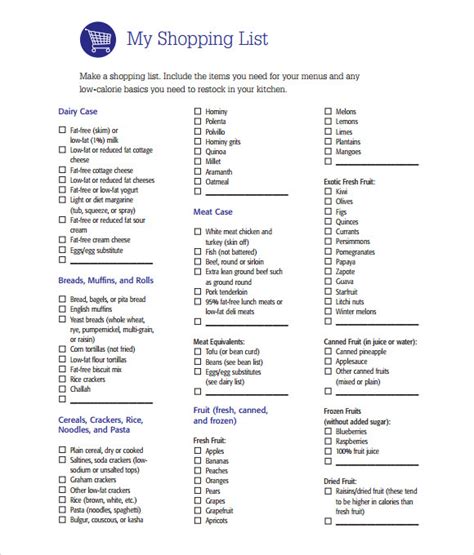 shopping list example pdf